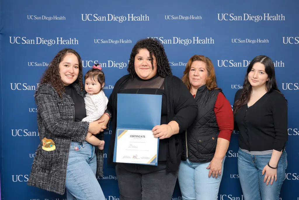 Once accepted into the program, Donna leaned into the transition fully. Her family stepped in to support her, helping with childcare and encouraging her through long study sessions. She completed her Certificate of Proficiency through Southwestern College in San Diego and finished her internship in December 2024. Shortly after, she was offered a full-time role as an SPT at UC San Diego Health.