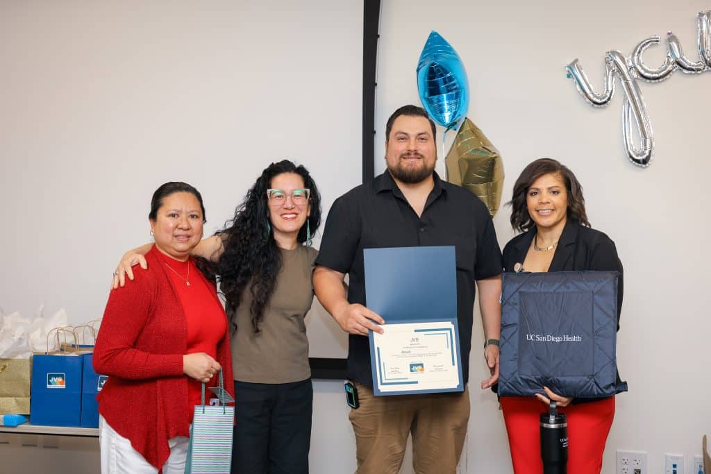 Jesus, second from right, at the UCSD Health and JVS Sterile Processing Technician program graduation.